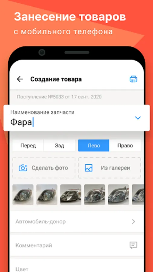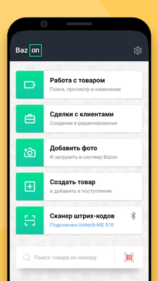 The application allows you to take photos of products, come, edit and view products in the Bazon system
