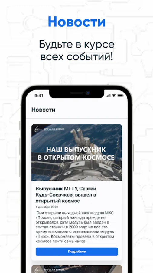 The official application with the schedule of classes at the Moscow State Technical University named after N. E. Bauman.