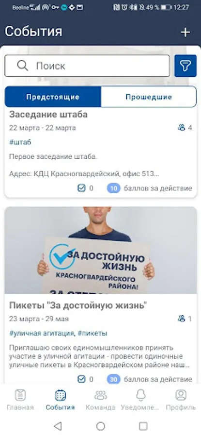 Create a private team, invite your like-minded people to it, make events for the team, set tasks, quickly monitor their implementation, encourage team members depending on their contribution to the overall victory. Get a countable result for the campaign!