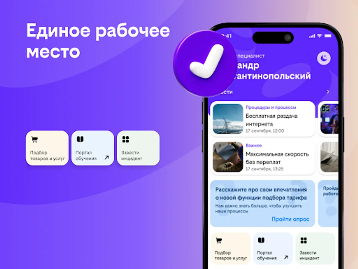 The application allows you to mobile, securely and quickly integrate into the work process, select relevant goods and services, provide service and interact within the digital management platform