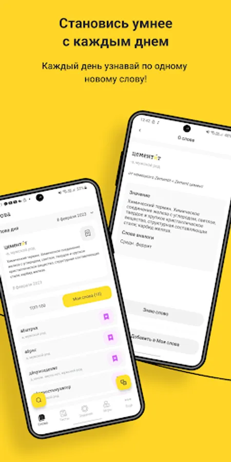 Get smarter every day! The application will introduce you to one new interesting word every day. Each word is accompanied by an interpretation, grammatical information and etymology!
