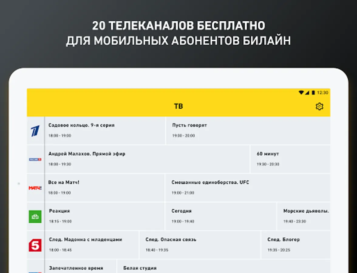 Beeline TV is not just an opportunity to watch TV channels, new movies, cartoons and series, it is online television of a new generation! All genres - action, comedy and more. A TV program for every taste and mood will help you have a good time, as well as free traffic for Beeline subscribers.