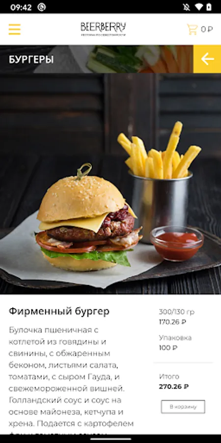 "BeerBerry" is ready to please you with an extensive assortment. Our menu includes hot dishes, salads, steaks, snacks, grills, specialty beers, and, of course, sushi, rolls and pizza.