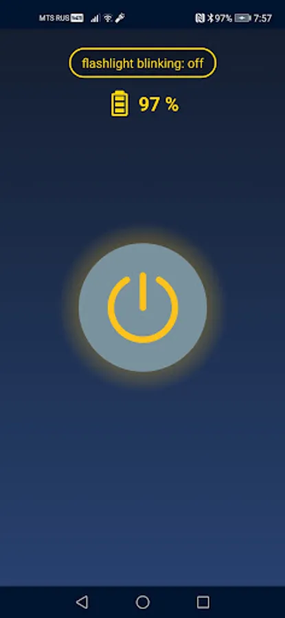 A simple flashlight, supports blinking mode (3 levels of flashlight blinking speed available), shows phone battery level.