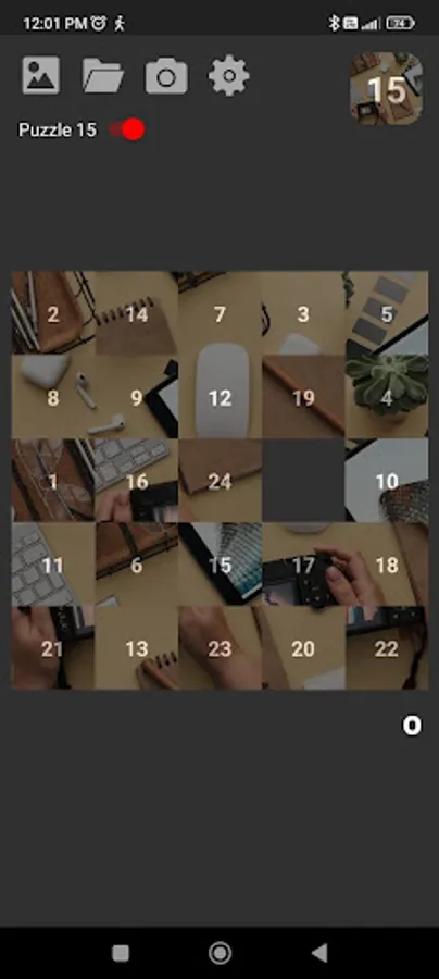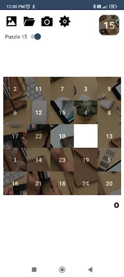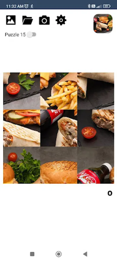 This application is a game, where you need to collect an image. You can load image from device gallery or from camera. And also you can choose image from suggested variants. There are five levels of difficulty and two game modes: classic puzzle and puzzle15.