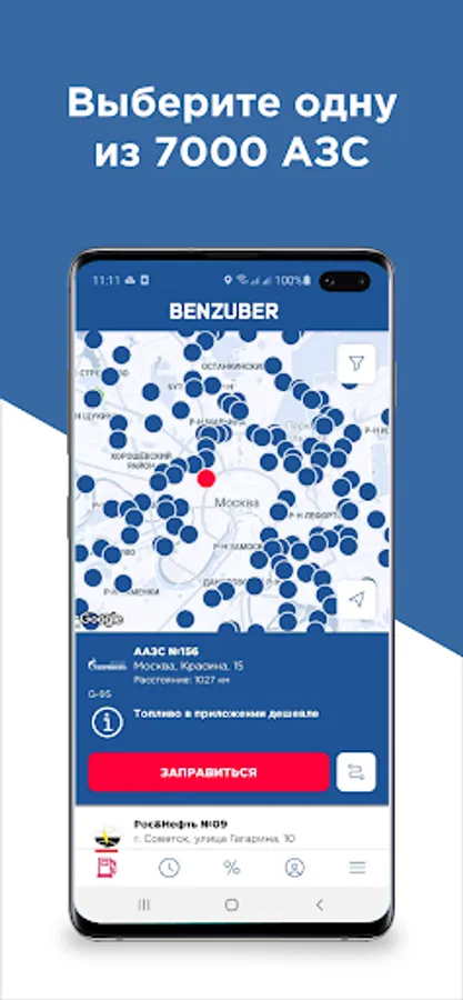 BENZUBER is an innovative payment service. This is a mobile app for refueling a car without leaving the car. The service allows you to pay for and carry out fuel dispensing with the help of a smartphone, without resorting to a cashier.