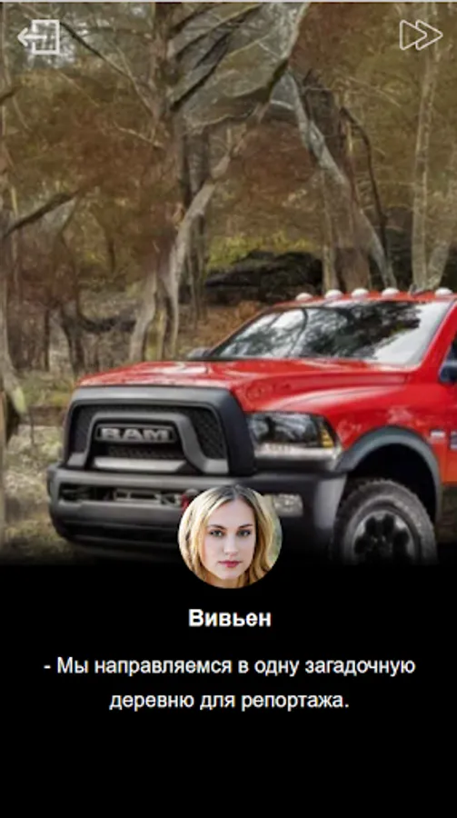 The visual novel lures us into its web from the first minutes. In search of a village about which unusual rumors are circulating, Vivienne and cameraman Martin find themselves in the wilderness with punctured tires. On the road, as if on purpose, spikes were laid out. And as if by chance, a mechanic from the same village drives up to the characters. A mysterious and laconic man agrees to give them a lift and take the car for repairs.