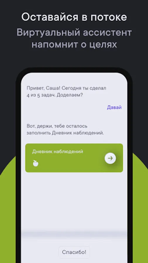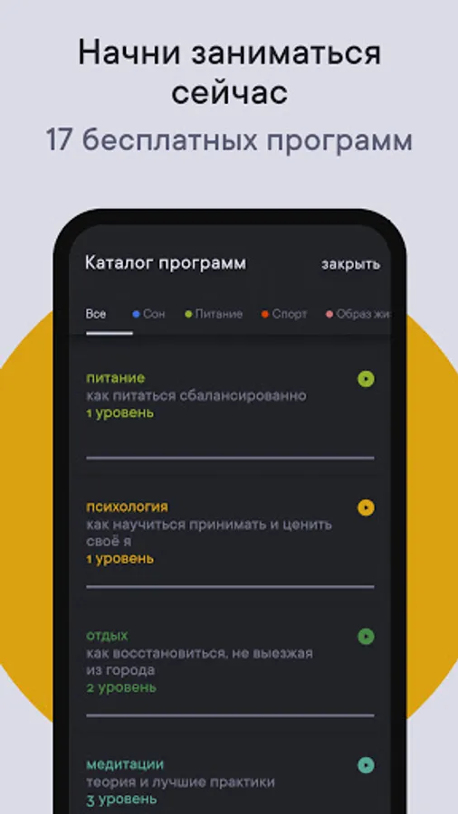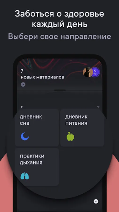 We also have built-in microservices. They will also help improve the quality of life. You can use them even if you do not go through the program: these are diaries of breathing practices, nutrition and sleep.