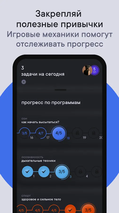 New tasks appear every day: you can read, watch or listen to them. We have video training and audio meditation.