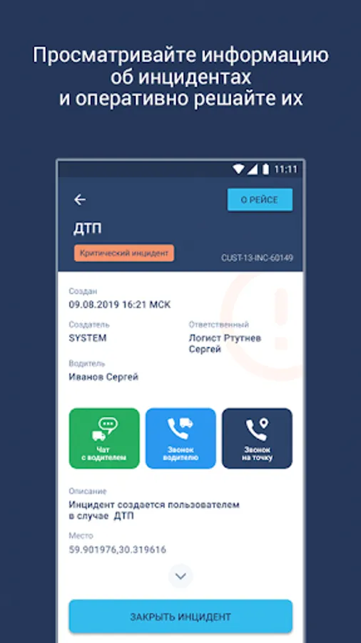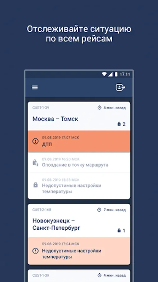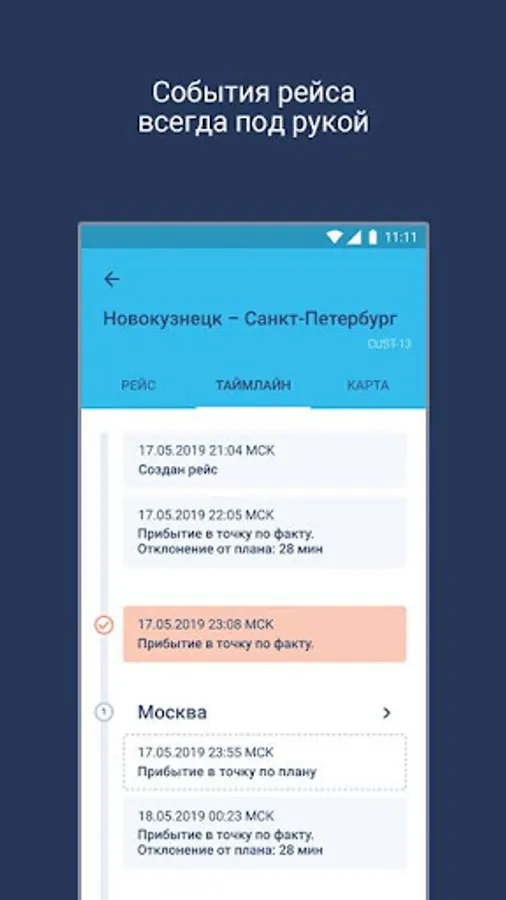 If the logistician is forced to leave his main workplace, the application will not allow you to lose the latest events on flights. It will help to respond quickly to changes in the flight in accordance with the rules of the role. Allows you to get information about the incident, solve it, and contact the driver if necessary. When making a decision, have all the necessary information about the flight: cargo, transport, time of arrival at the point and the direction of the vehicle on the map.