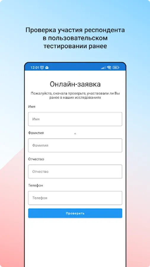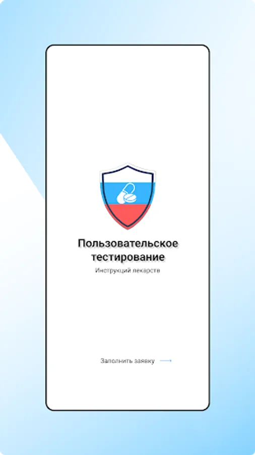 The mobile application is designed for self-registration of respondents to participate in user testing of drug instructions.