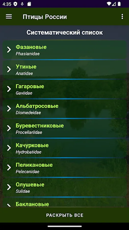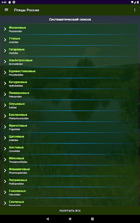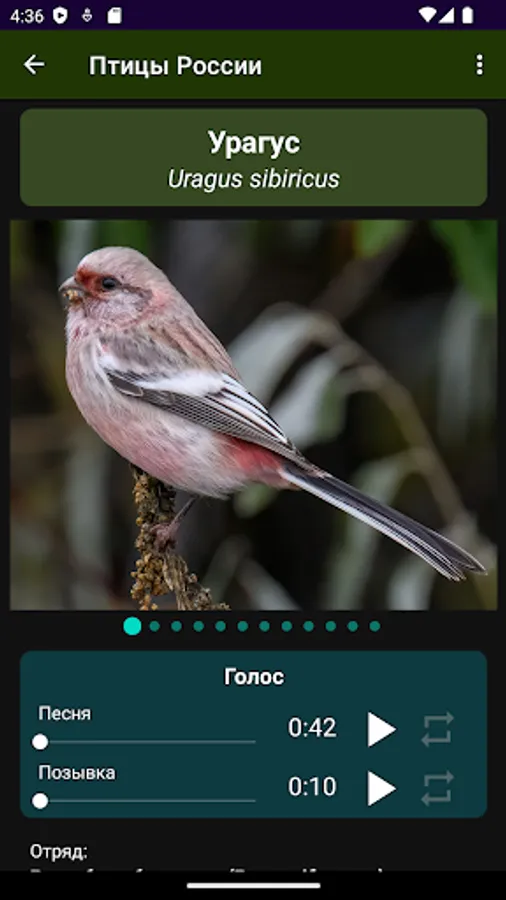 Guide to the birds of Russia, which provides a complete list of Russian birds with photos, descriptions and voices. The reference book presents not only nesting, but also wintering, migratory and vagrant species.