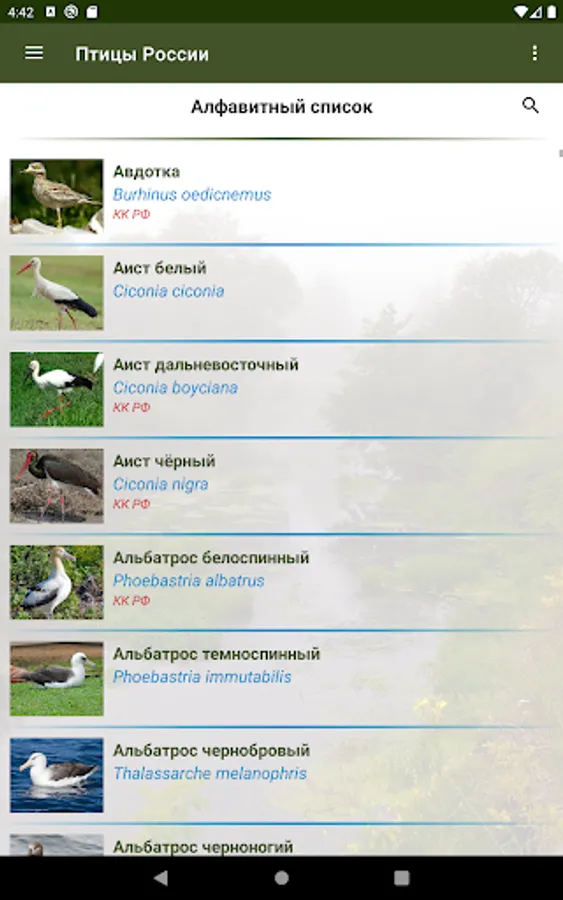 1. The database contains 829 species of birds - the most complete list of species that can be found on the territory of Russia