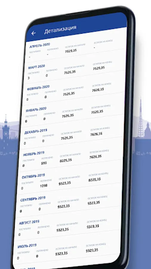 • Balance, detailing for 12 months