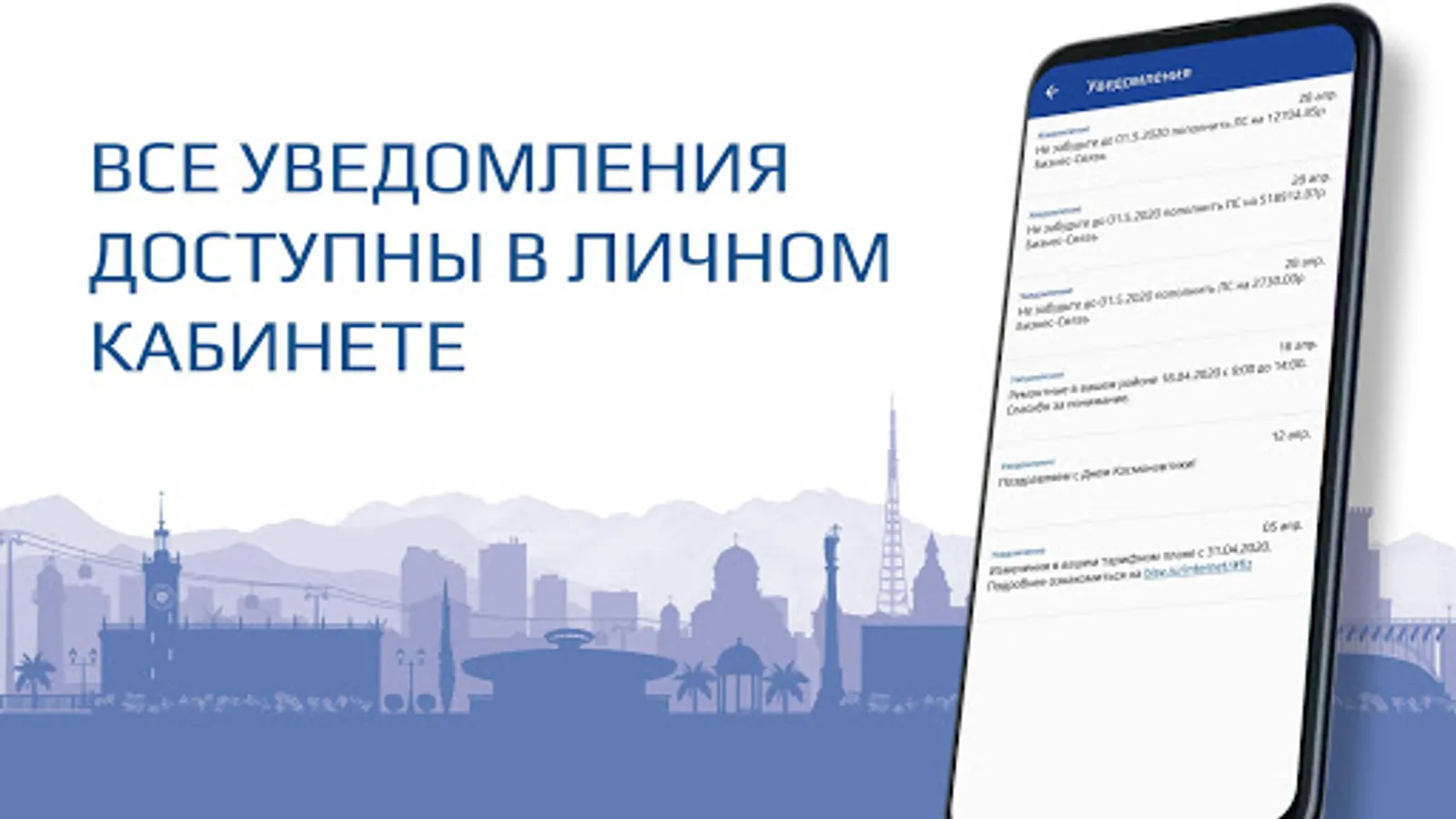 • Push notifications about payments, promotions, blocking, preventive and emergency work
