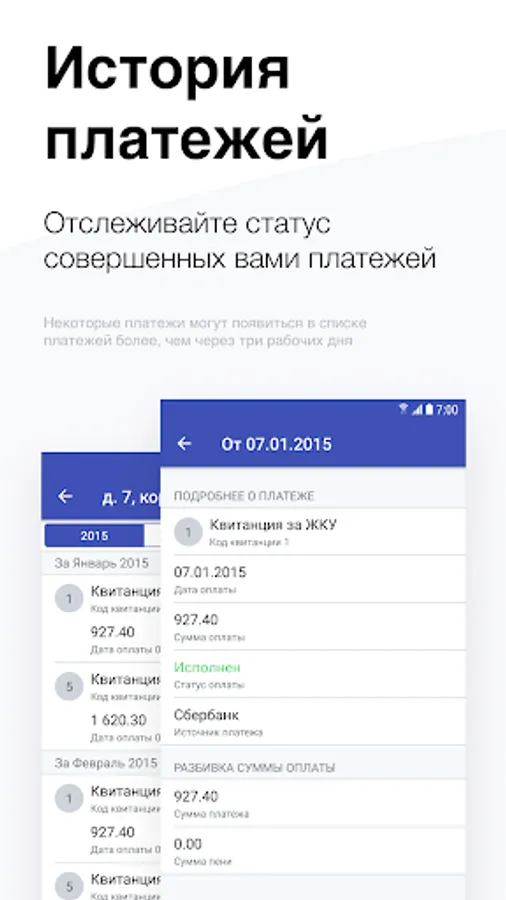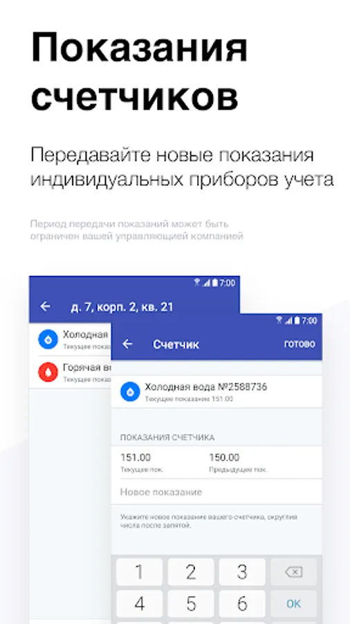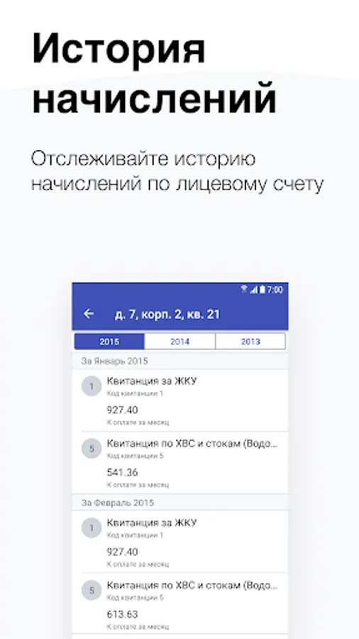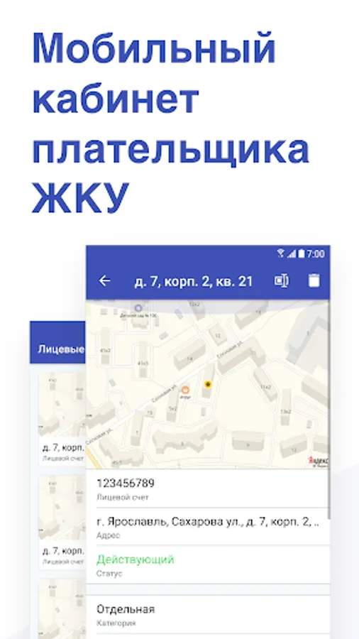 This application completely duplicates the user functionality of the “Personal account of the utility payer” web service. The main functionality contains:
