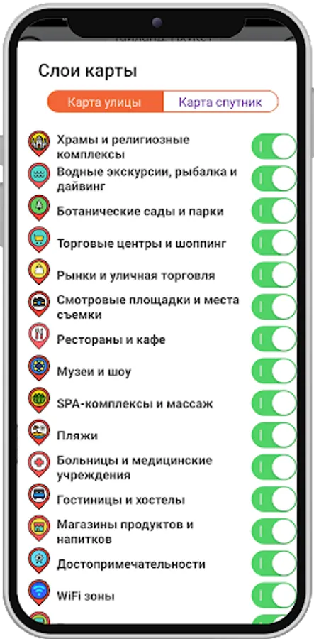 Interesting locations and unusual places that tourists mark. Use for your bright holiday and share with others, developing the map together.