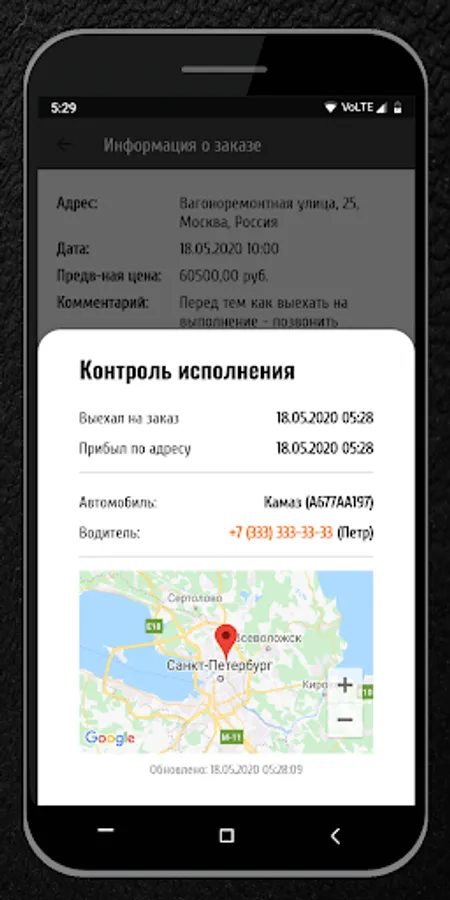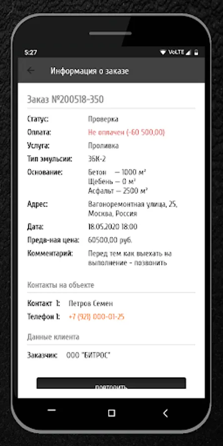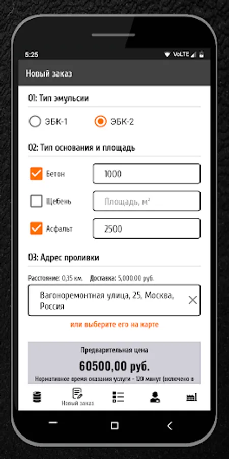 The application allows you to order pouring bitumen emulsion around the clock as easy as ordering a taxi!