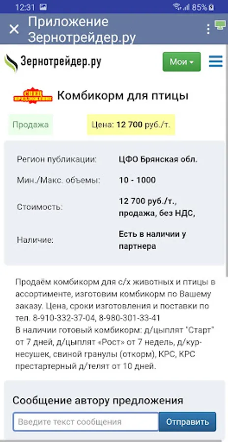 The Zernotreyder.ru trading system was created in order to optimize trading operations and centralize the agricultural market on a single, open and independent platform. The system users are provided with high-tech tools for effective business interaction and business communication with counterparties. The creator and operator of the system is the news agency Zerno On-Line.