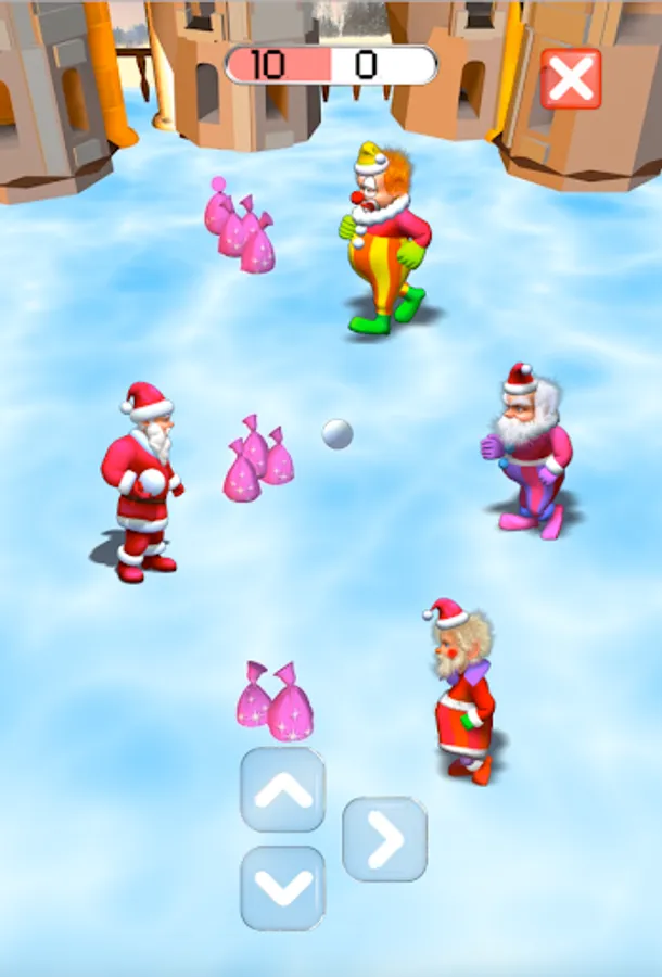 This game about Santa Claus. Santa Claus throw snowballs at others Santas and Clowns.