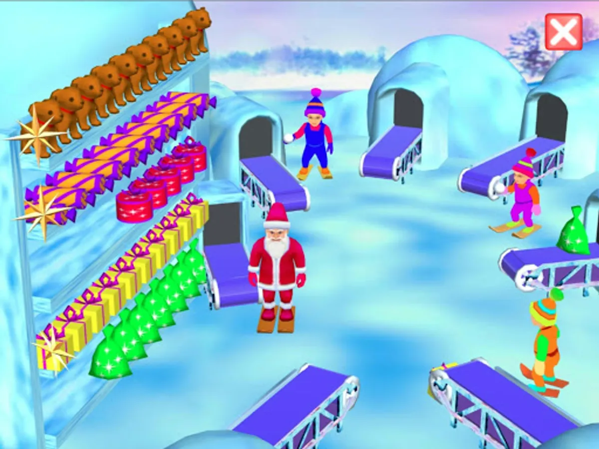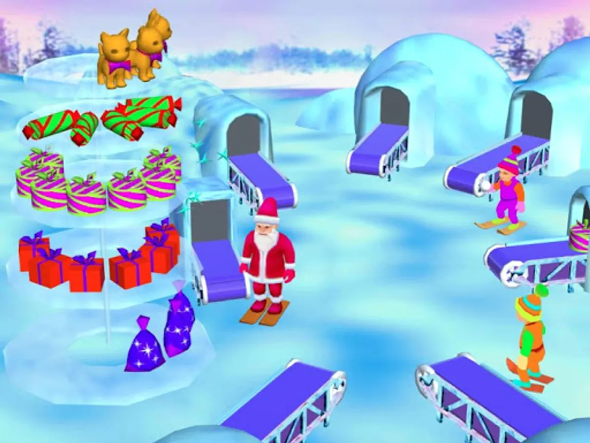 Santa Claus must run to the conveyor to take a gift and put a gift on the shelf. But the bad guys disturb him. The goal of the game is to fill all the shelves with gifts.