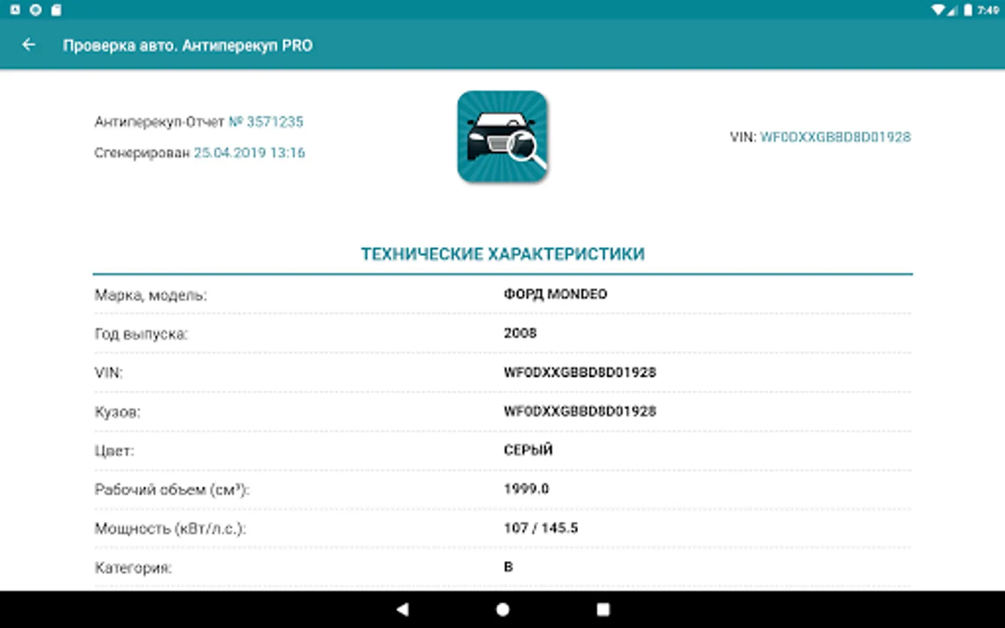 In addition to these checks, the application has the ability to order a technical inspection, issue an MTPL or CASCO policy, order an urgent purchase of your car, order assistance in the selection of a car (with the support of an outbid club). Our partners, the Rospodbor company, will check the engine, scan the car using an OBD / OBD scanner. Check the condition of the body using a thickness gauge. They can call an autoexpert for a day.
