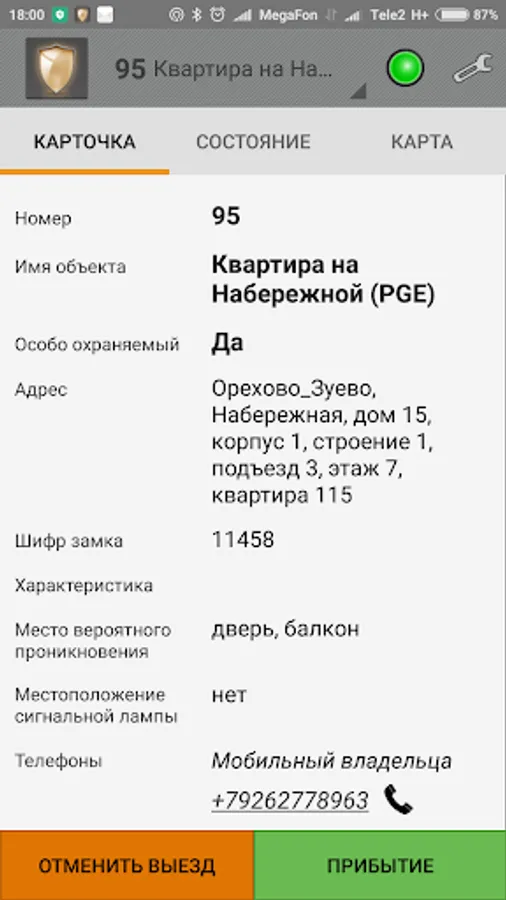 • Automated transfer of RRT report on the results of action on the subject of protection