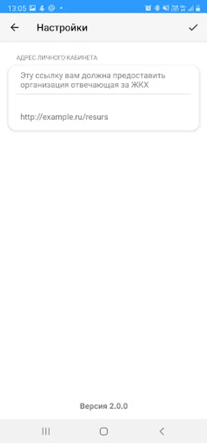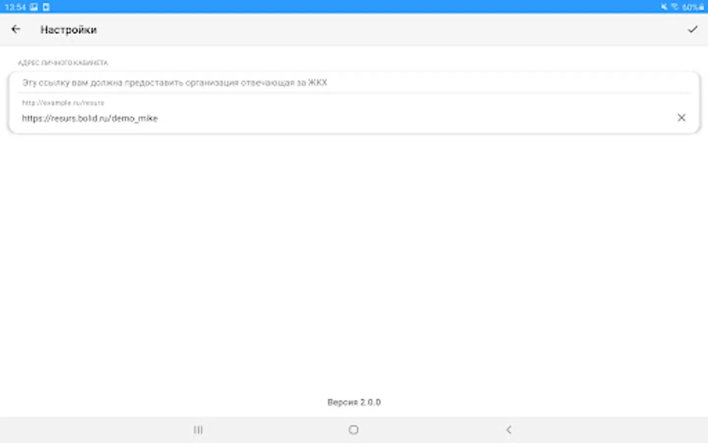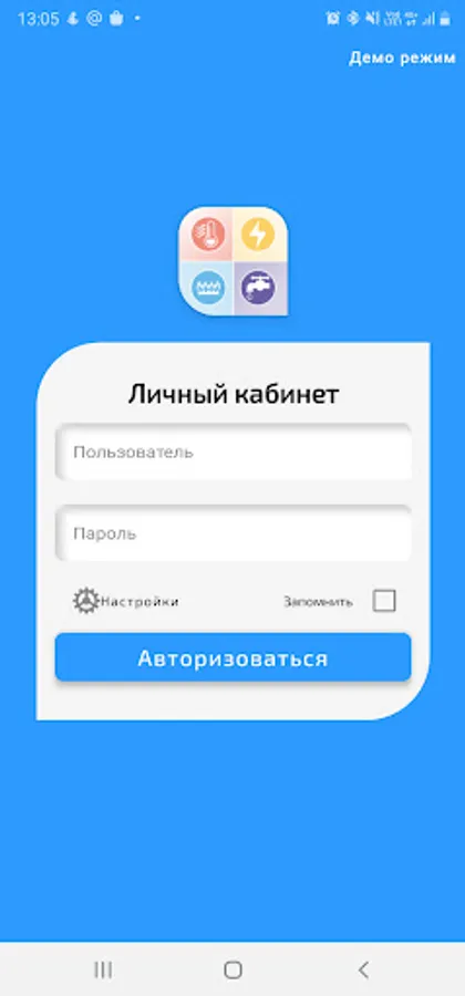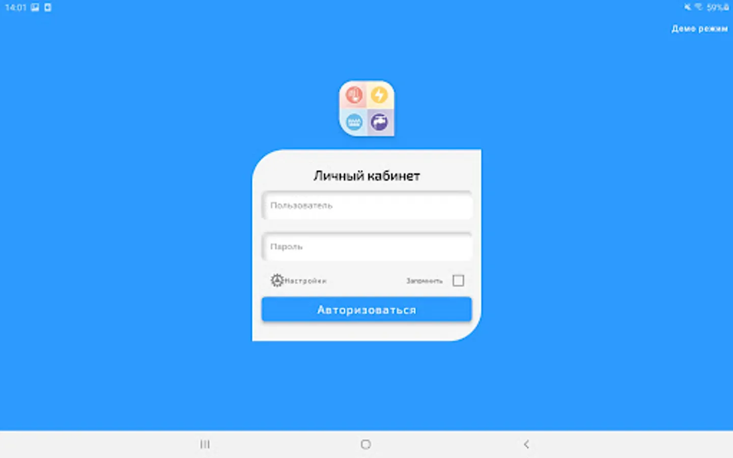 Before using it, you must specify the address of the personal account of ASKUE "Resource" in the settings. To get acquainted, you can use the Demo account.