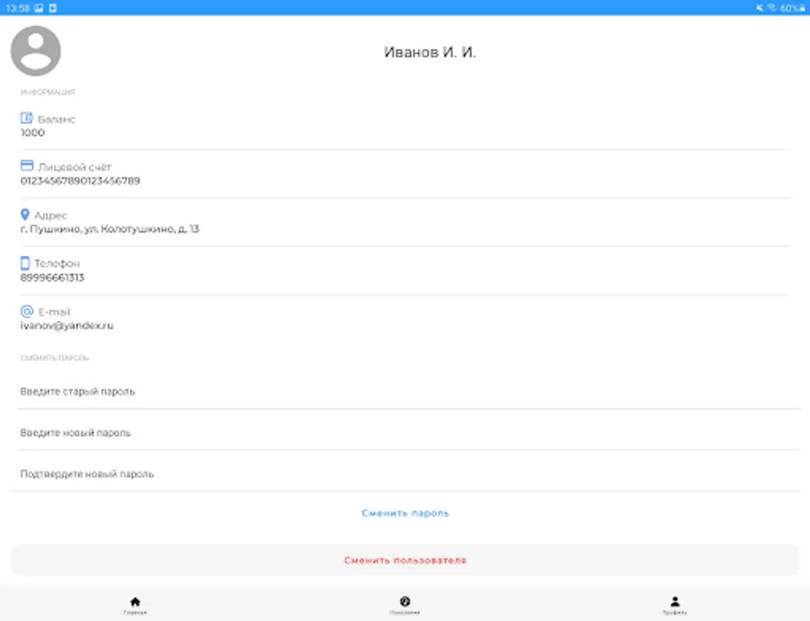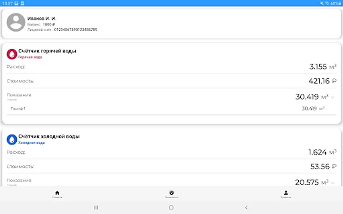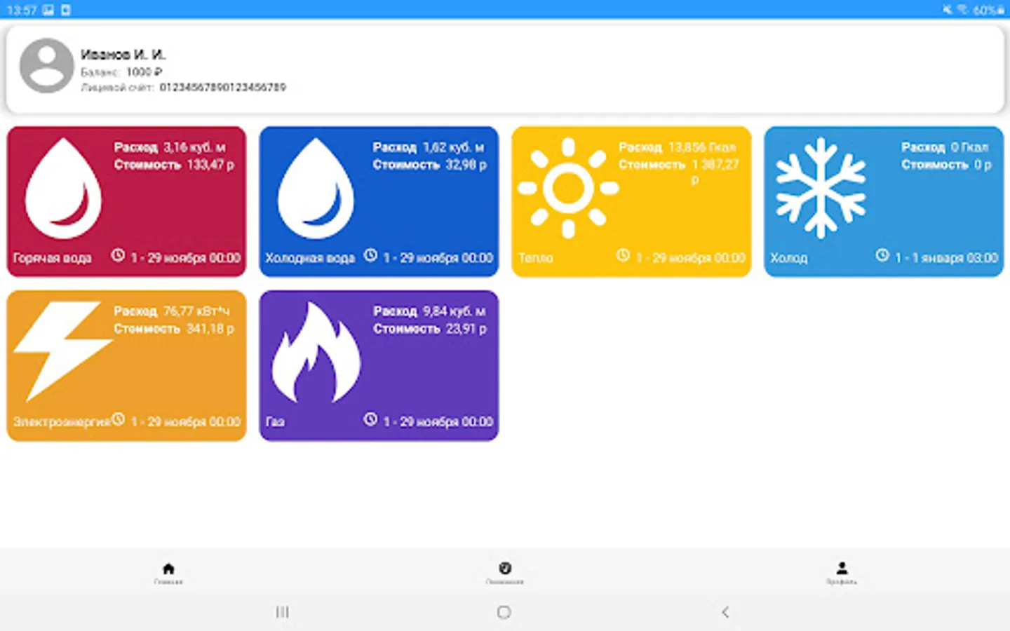 Before using it, you must specify the address of the personal account of ASKUE "Resource" in the settings. To get acquainted, you can use the Demo account.