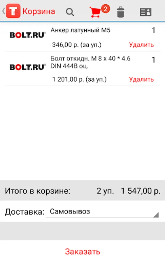 The mobile client of Bolt.ru allows you to simplify and speed up the formation of an order by scanning the barcode on the original box or by selecting a product from the catalog.