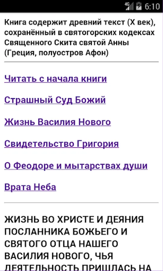 The full version of rare books, (the tenth century), written by Gregory, a disciple of St. Basil (New). It begins with the story of St. Basil, life in Constantinople at the time, the various miracles and new cases with Basil, about what later happened to Gregory (the prayers of his mentor). About the fate of the soul after death and the Last Judgment.
