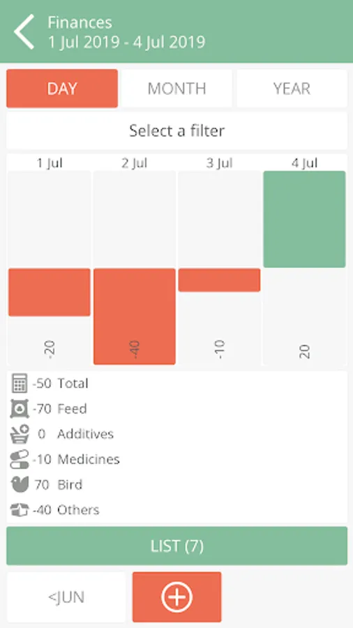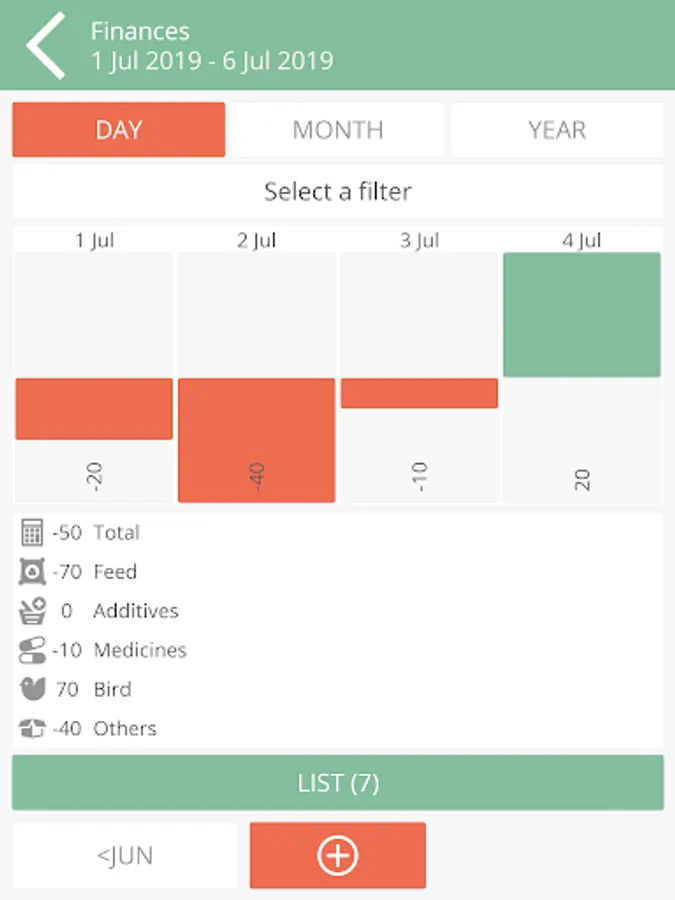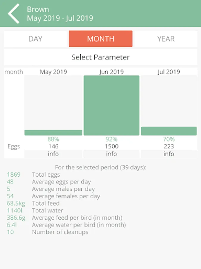 The poultry rates app includes the ability to display statistics on your poultry farm at various scales from a day to a year, which will allow you to correctly assess the results of your work and predict the further development of your poultry population.