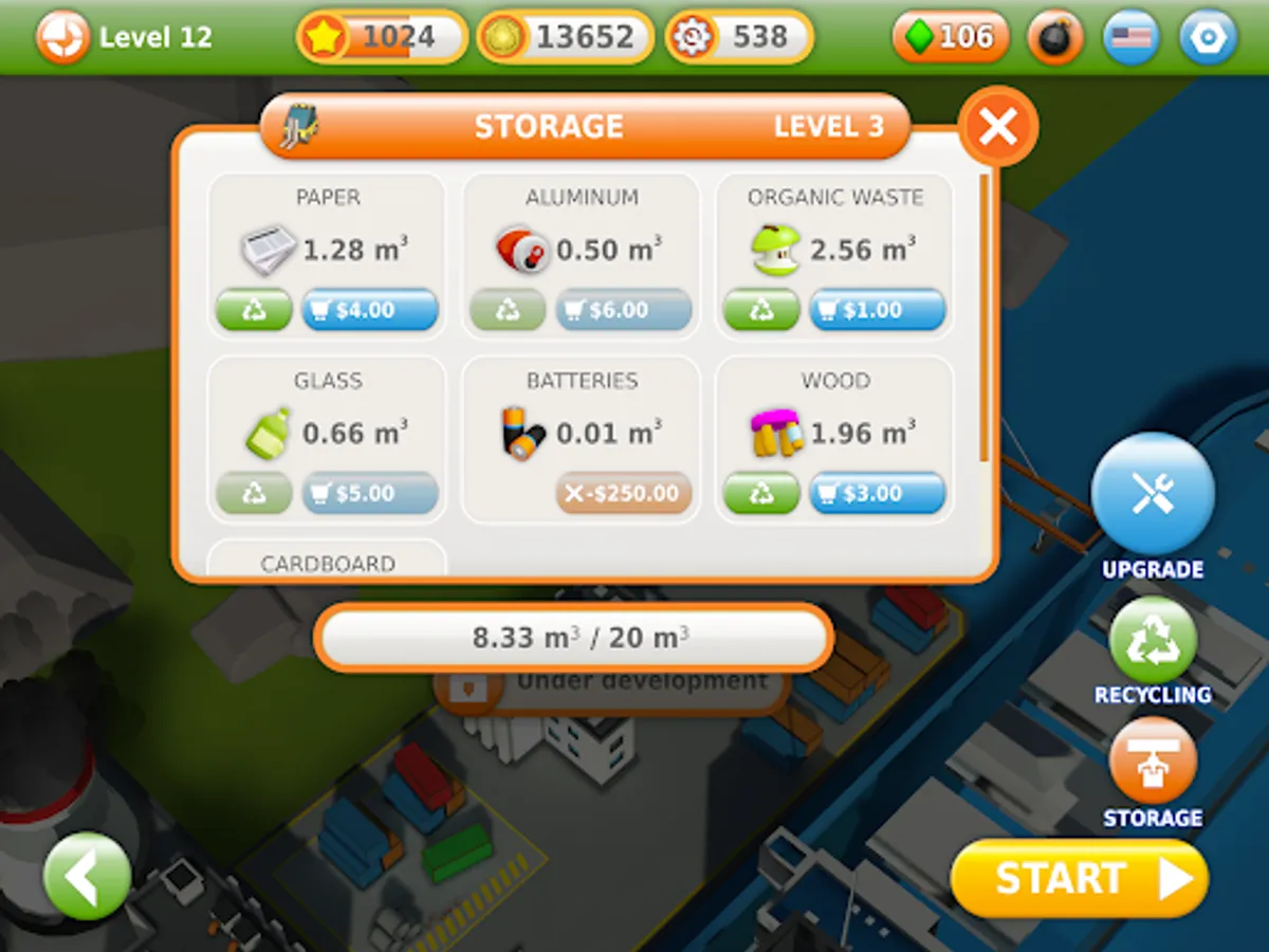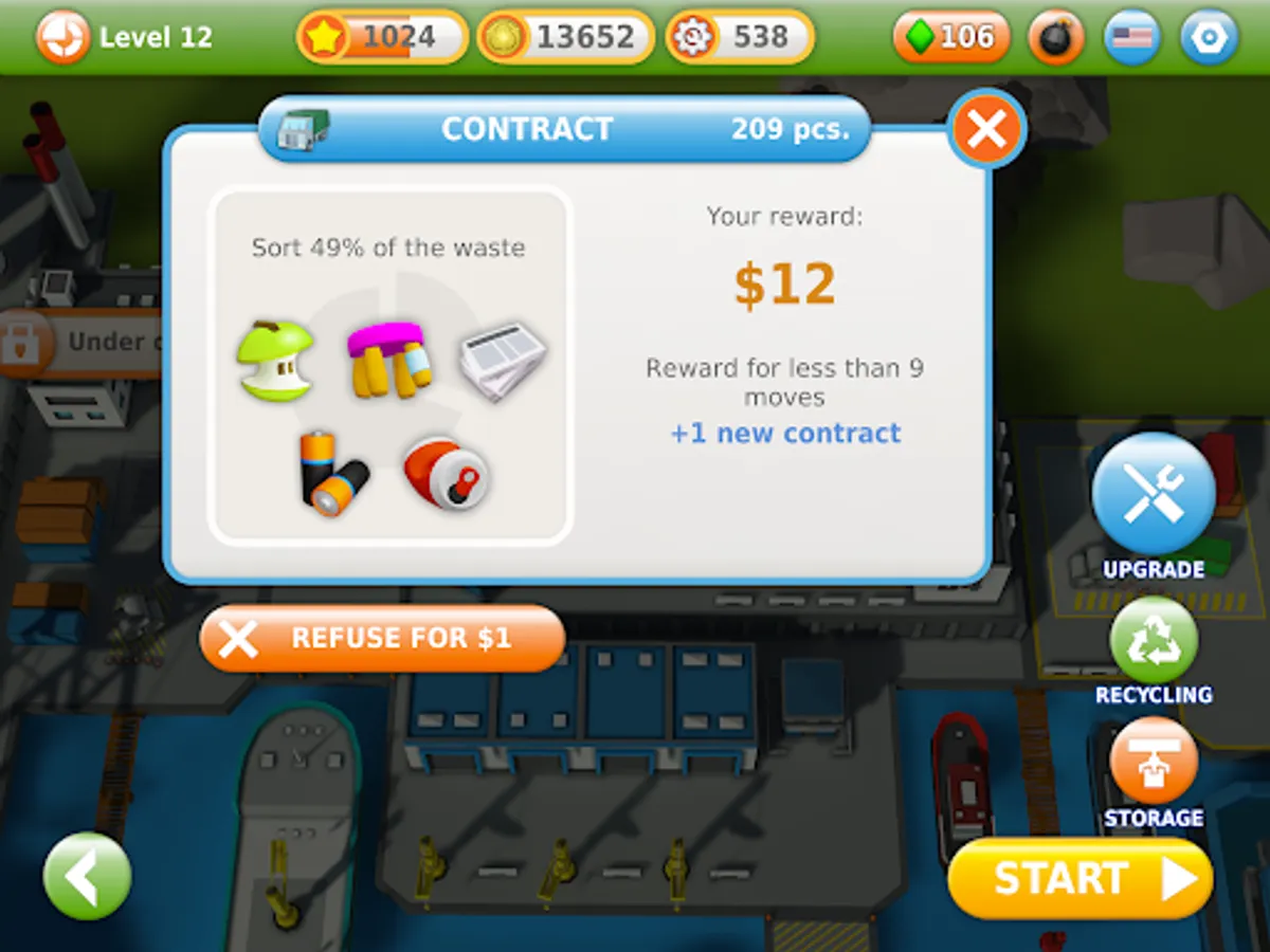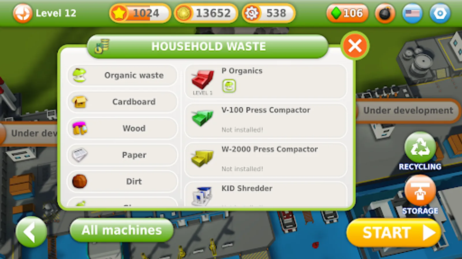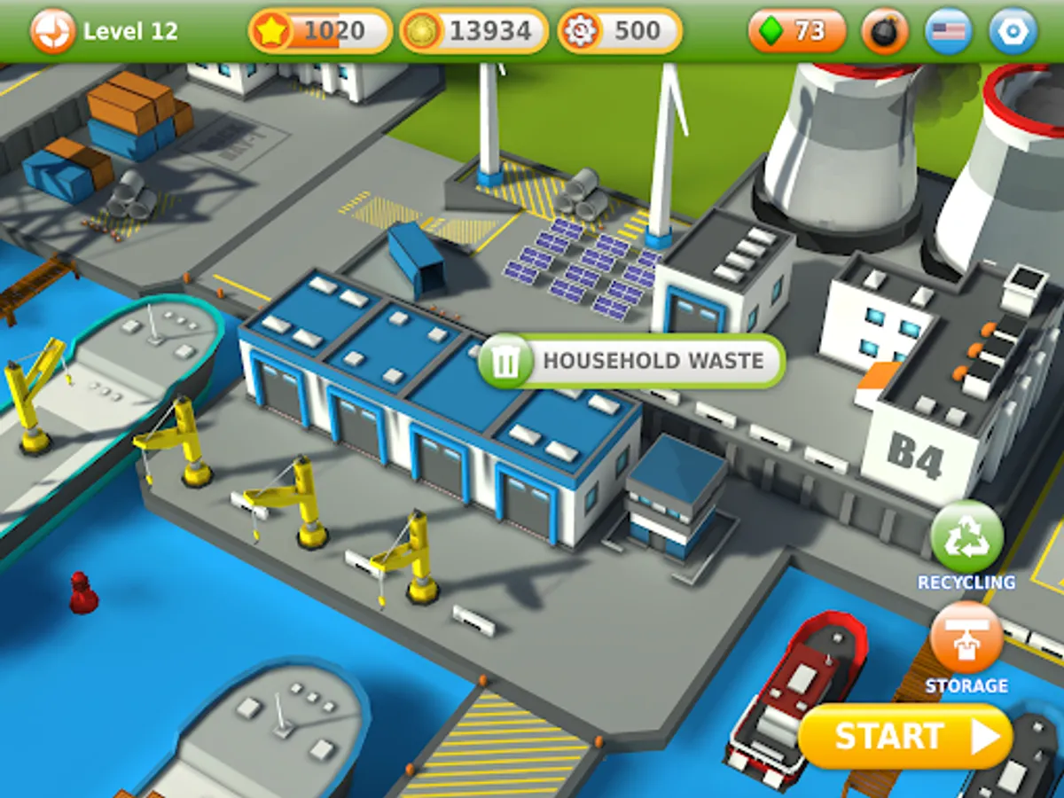 Match-3 games graphics has never been so colorful and nice-looking. Here you’ll go to see a fantastic seaport, a comfy and clean household garbage recycling shop, an innovative vehicle recycling plant, and other real-life exciting sorting and recycling sites for various types of garbage.