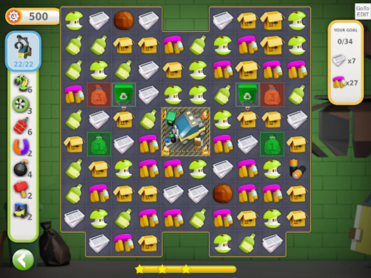 The rules are simple and funny. Sort the garbage just as you do in real life, 3 in a row or more. You’ll be amazed by the awesome rewards appearing on the screen with spectacular blasts and special magic effects!