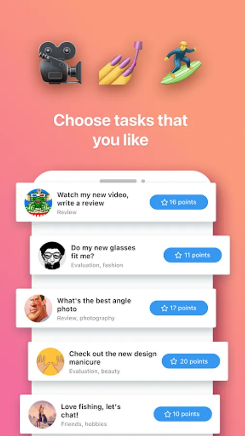 Tasks are categorized and sorted by attractiveness. Tasks are very simple and do not require special skills.