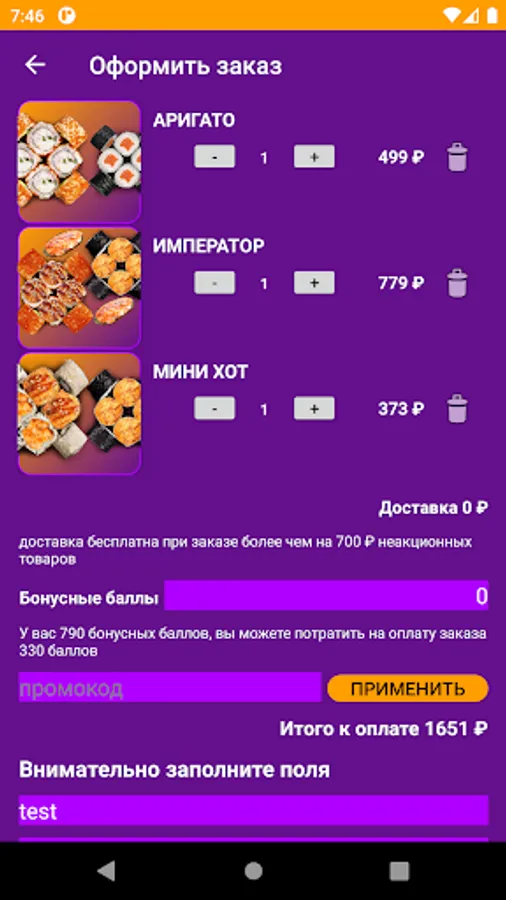 - Personal account will speed up ordering
