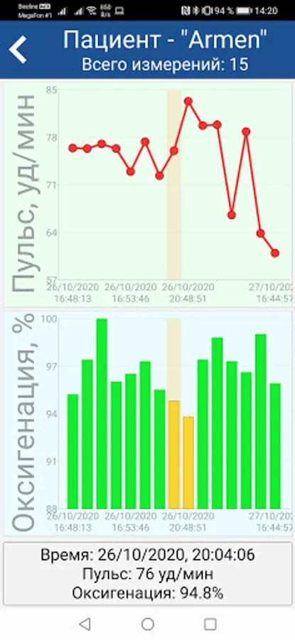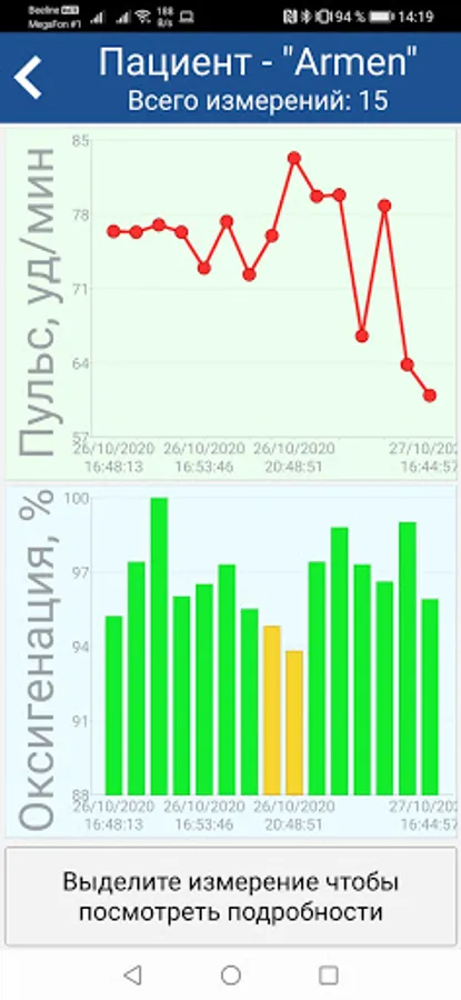 This application is intended for monitoring and analyzing the dynamics of pulse parameters and oxygen saturation in the blood of users who have taken measurements using a Brain Bit pulse oximeter.