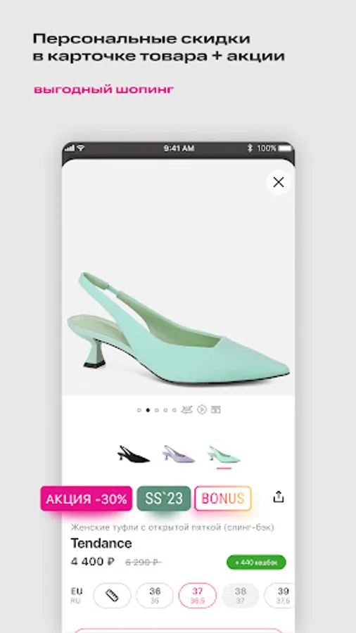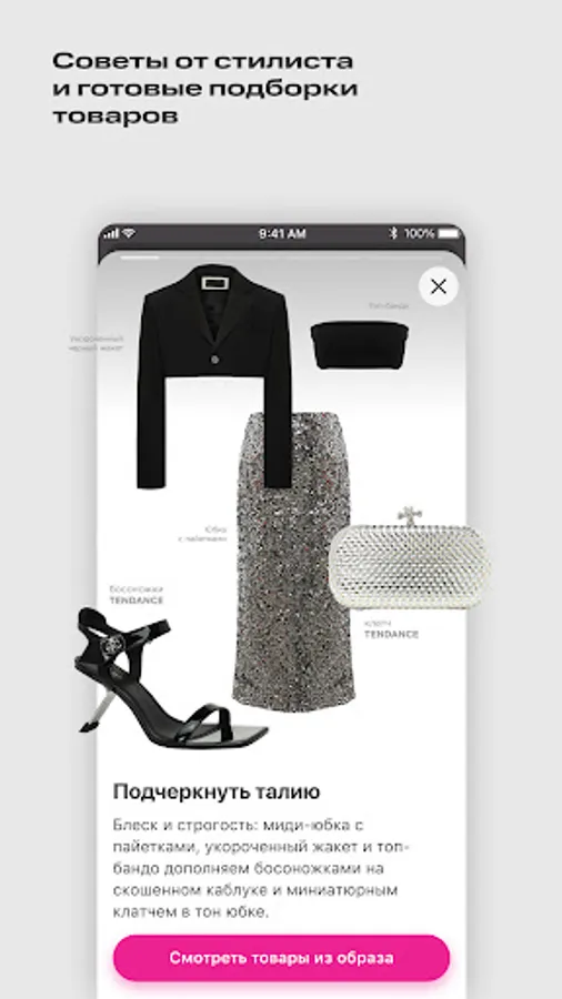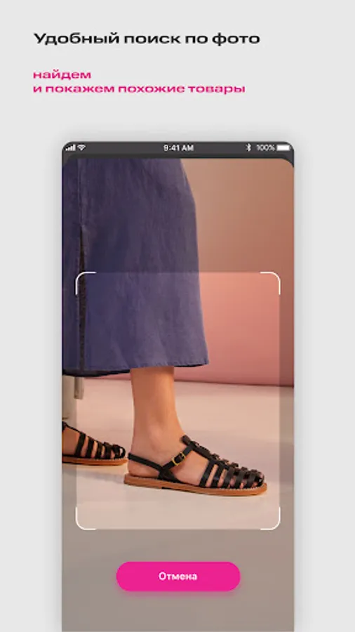 Search by photo makes it easy to find "the same" or the most similar model of shoes, clothes or accessories. Or use the convenient filter system - by color, style, size, season, price and other parameters. You can also check the availability of the product in the offline store and book it for 24 hours.