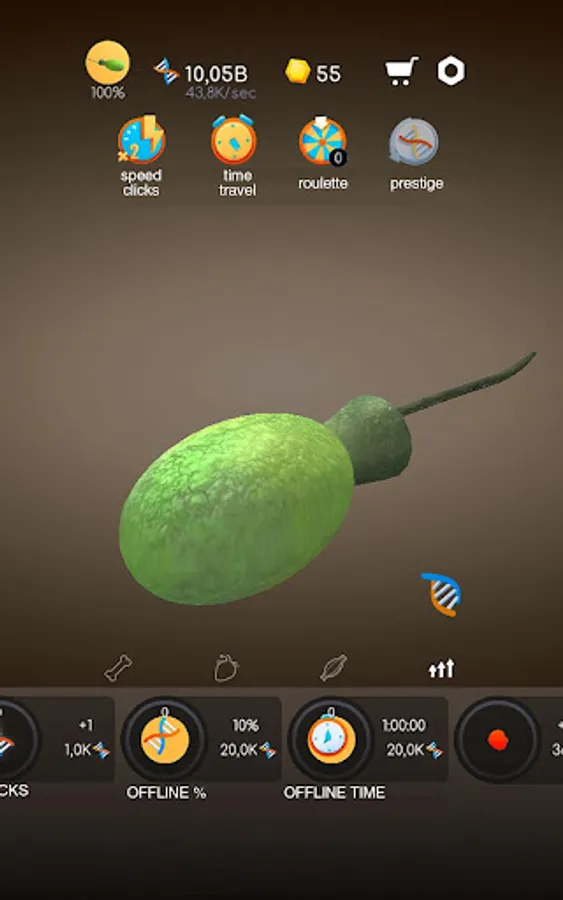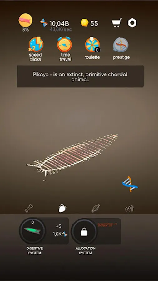 In game Idle human evolution, you will see a unique system of improving creatures. Excellent graphics of game objects, a new experience in creating a living organism. In this skeleton game, it is possible to collect fish, viruses, people, and animals. Tap tap clicker is already waiting for you! Your goal is to accumulate a lot of cells, one, two, three, and, therefore, there are already a million of them, from which you create organs, muscles and full body.