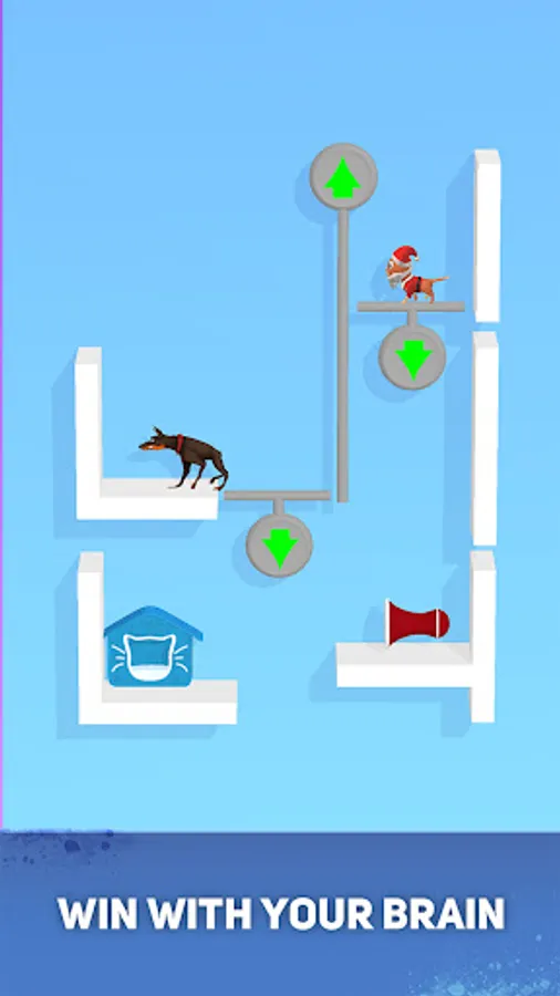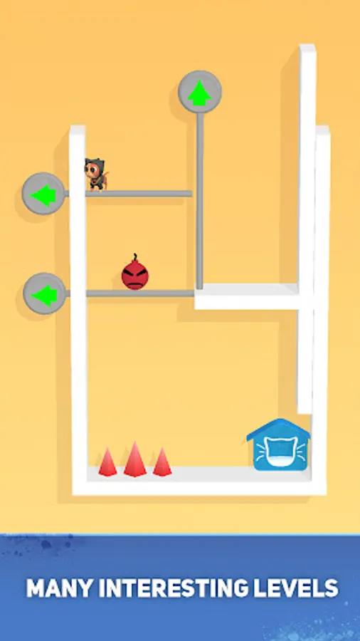 Solve logic puzzles! In this cat adventure you will find a fascinating story of a cat. Incredible dangers and many enemies await you: beware of cunning dogs that just want to bite the cat's tail, sharp spikes can hurt their paws, and lasers can set fire to the fur! Save the cat from mortal danger and find a way out. Choose suits and skins. And go through the levels with your brain. Start your adventure right now!