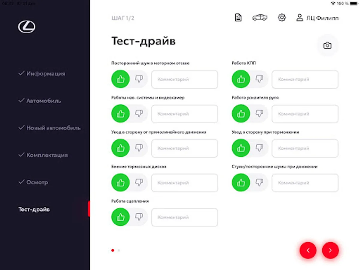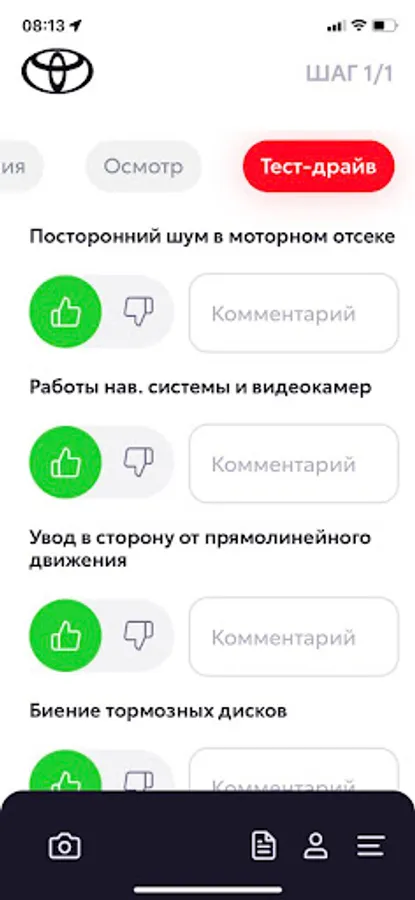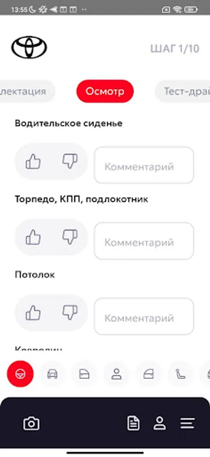 Application for the inspection of used cars, developed by Toyota Motor Russia LLC for the official dealerships of the Russian Federation.