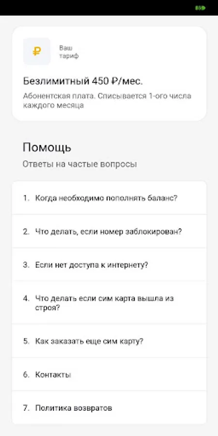 In the application, subscribers can view their personal account, edit their personal data and contact the support service!