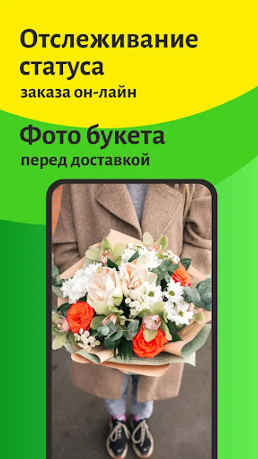 • In the application, you can buy a bouquet with delivery in Novosibirsk or pickup from 22 BuketOpt stores.