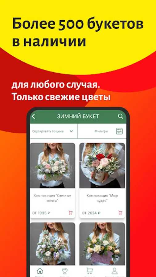 • 500 rubles as a gift for flowers for new customers. Register in the application and get a bonus of 500 rubles.