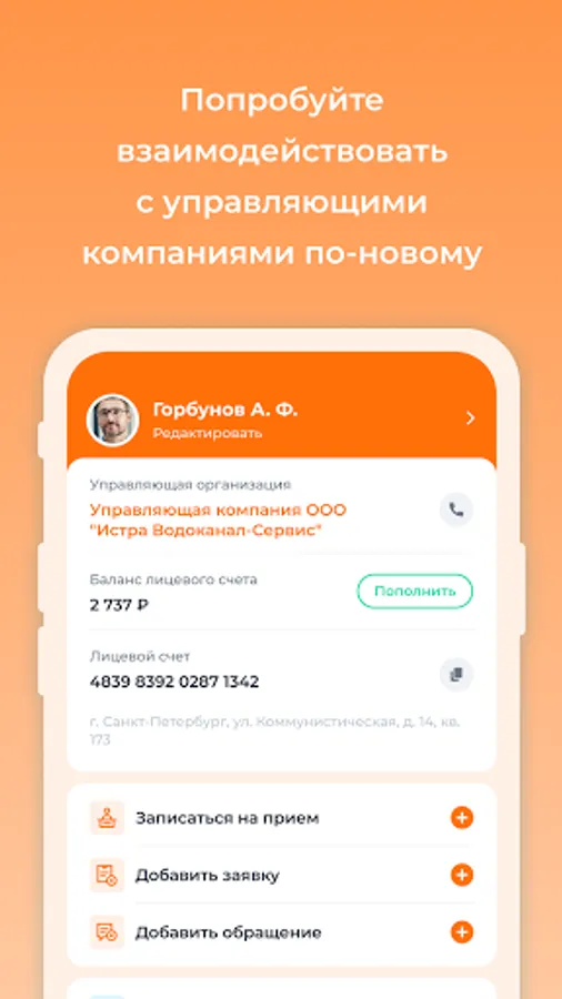 Now you can communicate with us using the resident's personal account: leave an application, transfer meter readings, pay a receipt, etc. questions can be resolved in our application.