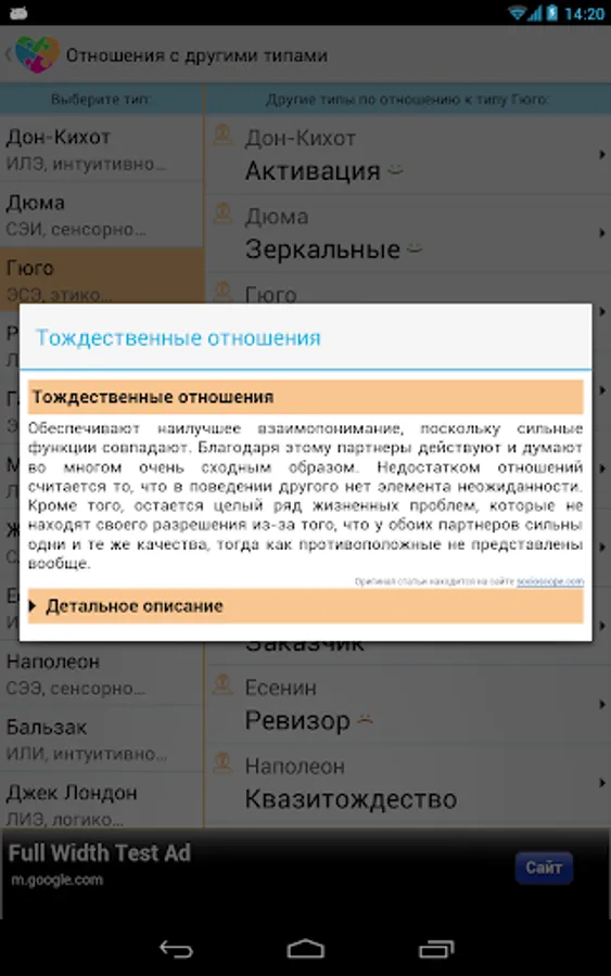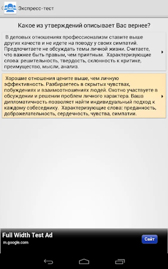 Take a psychological test to determine your personality type, find out the prediction of relationships with people important to you, recognize your strengths and weaknesses.