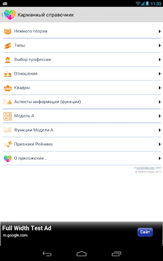 Pocket reference book on socionics. Typing and tests, after which you can learn your social type. Psychology of relationships.