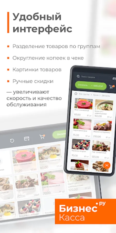 Turn your mobile phone or tablet into a full-fledged POS system for your store or outdoor trade, in accordance with 54-FZ. The cash register application is adapted for medium, small and micro businesses (small chains, shops, tents, stalls, online stores, delivery services).
