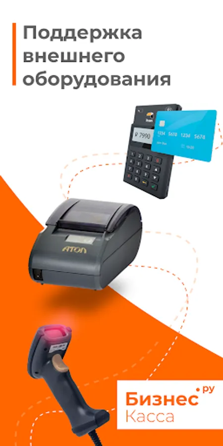 - the ability to connect all existing fiscal registrars ATOL, Shtrikh-M and K1-F via Wi-Fi, USB or Bluetooth