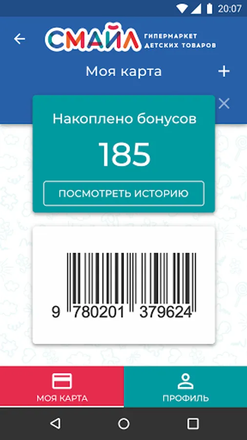 Copy bonuses, be aware of new products and promotions along with the mobile application of children's goods hypermarkets "Smile"